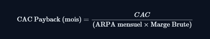 C’est le nombre de mois nécessaires pour récupérer l’investissement d’acquisition initial. Dans un monde où le cash est redevenu rare (et cher), le payback est redevenu un juge silencieux.