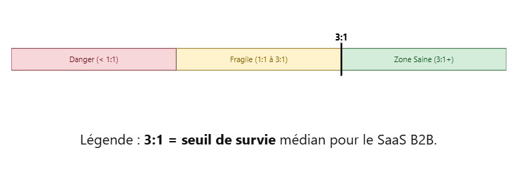 - Le ratio LTV:CAC : pourquoi 3:1 est un seuil de survie