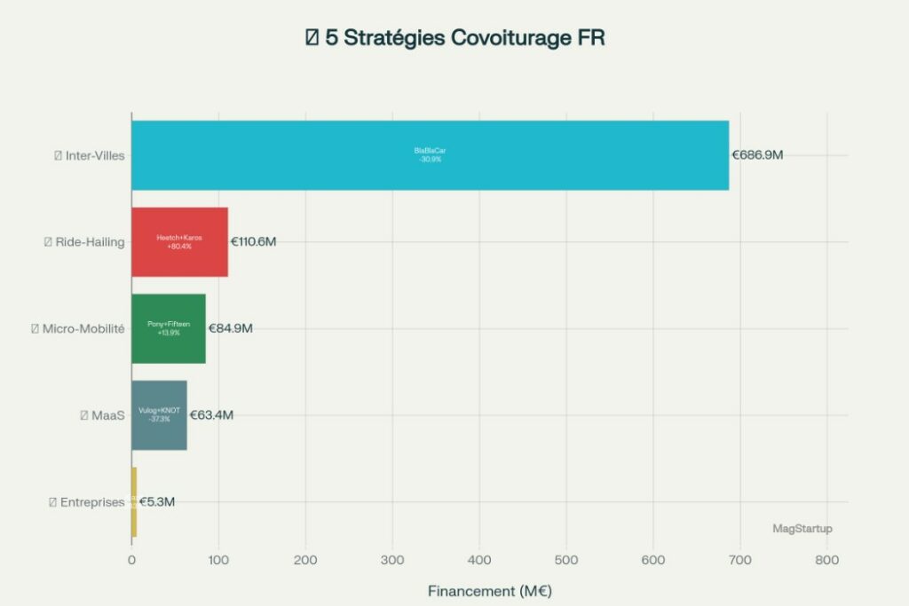 - Klaxit → BlaBlaCar (2023, 5,3M$ levés) : Expansion segment corporate domicile-travail.