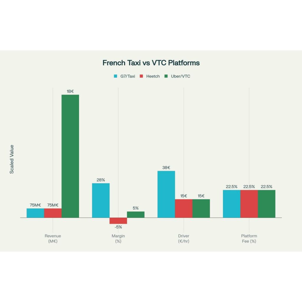 La France impose des restrictions sur l’autonomie (questions d’emploi, responsabilité légale), et l’électrification progresse lentement. Le marché reste fragmenté. G7 encaisse les profits ; Uber brûle du cash ; Bolt se replie ; Heetch consolide ses niches. C’est une balkanisation à long terme du secteur français.