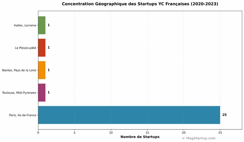 Sur les 29 startups françaises financées par Y Combinator durant cette période, 25 sont basées à Paris. Une seule à Toulouse (Beyond Aero), une à Nantes (LabelFlow), une au Plessis-Pâté (Hylight), une à Halles en Lorraine (Moneco). Cette concentration à 86% reflète une réalité structurelle que personne n’ose nommer : Paris capte le capital, le talent, et l’attention des investisseurs internationaux—pendant que les régions survivent avec les miettes.